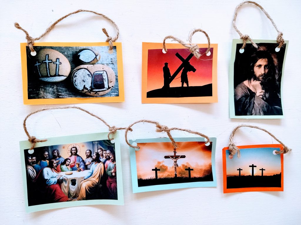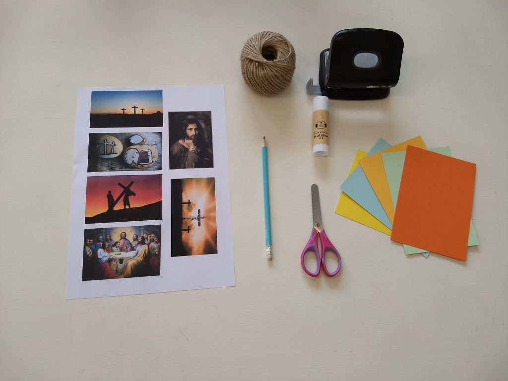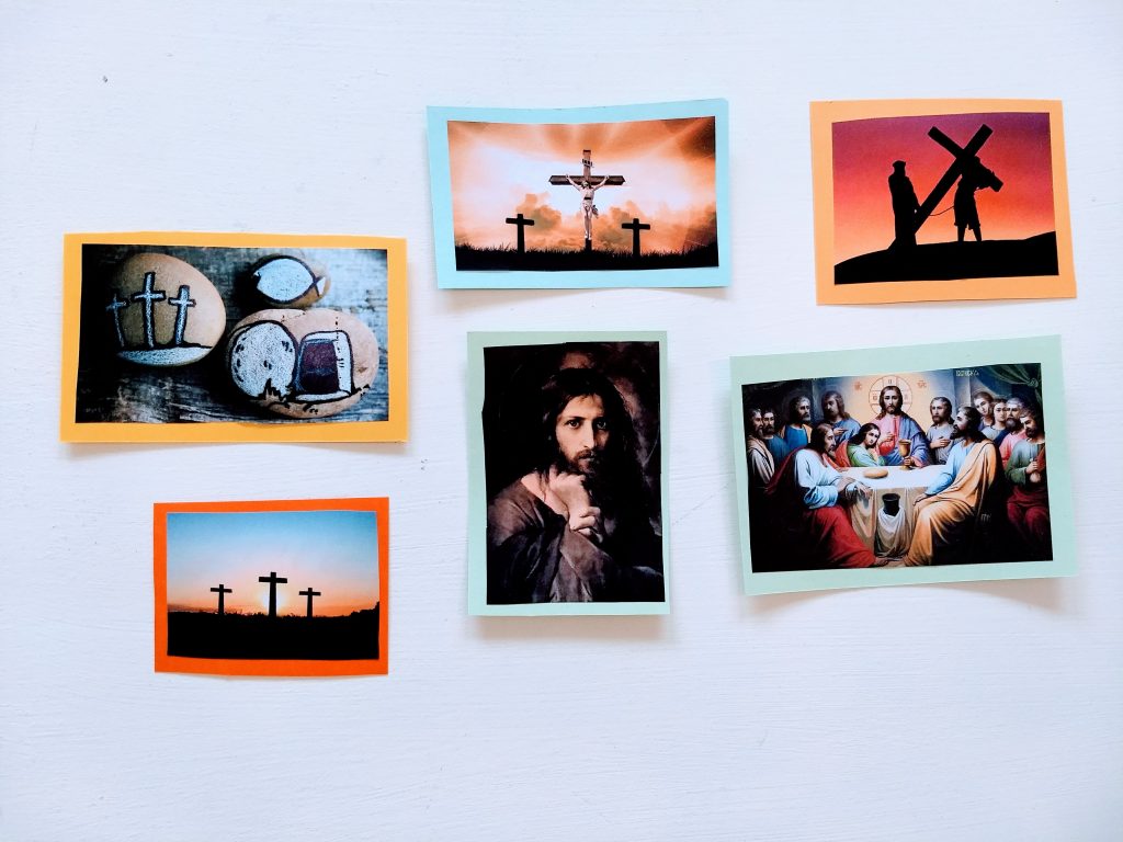 - Last ned vår pdf med bilder av Jesus i påskeuka og print de ut på papir (eller finn egne bilder på internett)